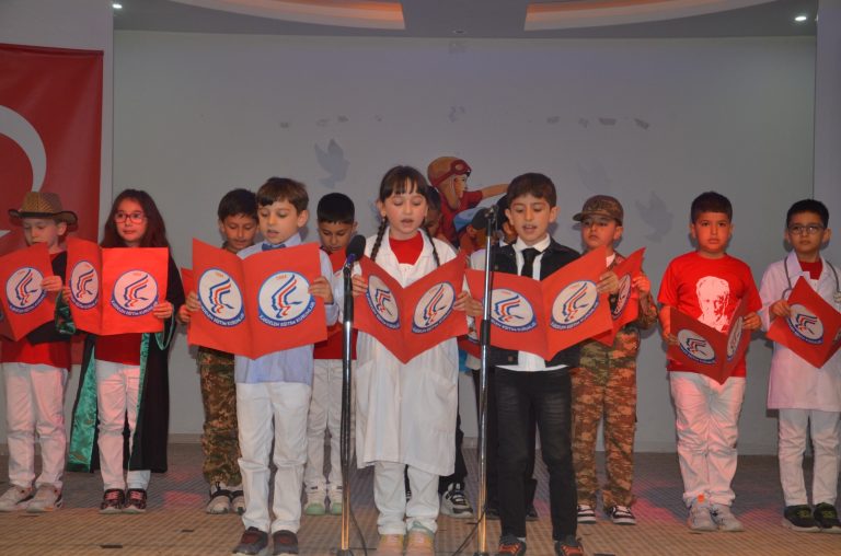 Konferans salonunda gerçekleşen kutlama programına birbirinden güzel gösteriler damga vurdu. Saygı duruşu ve İstiklal Marşı’nın okunmasıyla başlayan program, günün anlam ve önemini anlatan şiirlerin okunmasıyla devam etti. Şiirlerin ardından öğrenciler çeşitli müzik performansları sahneledi. Piyano ve gitar çalan öğrenciler büyük beğeni topladı. 2. sınıf öğrencilerinin ritim ve dans gösterilerine veliler de alkışlarla eşlik etti. Oratoryo, modern dans ve jimnastik gösterileri de katılımcılardan yoğun alkış aldı.
