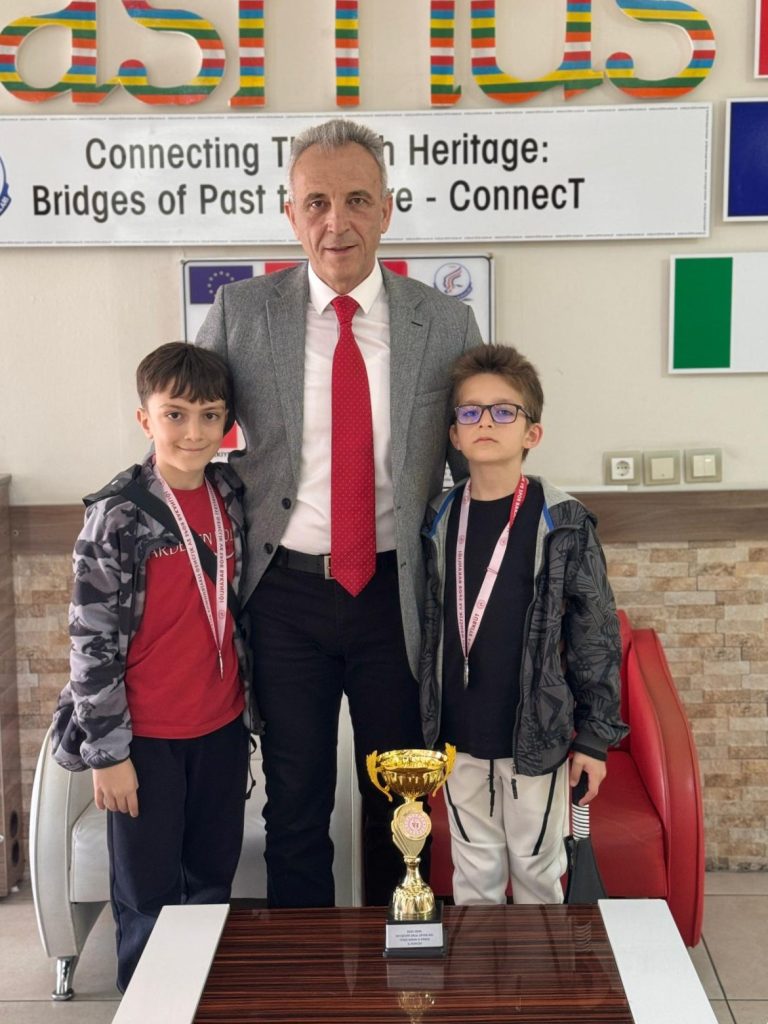 Öğrenciler kupasını ve madalyasını düzenlenen törenle aldı.